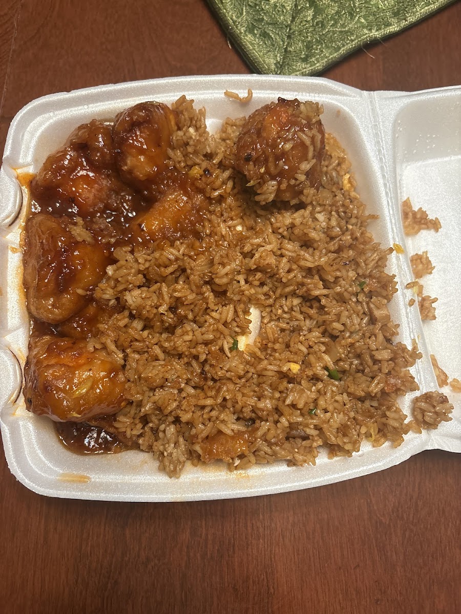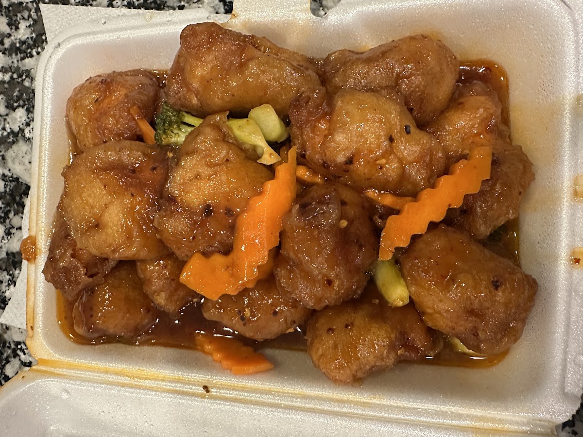 My first time ordering. Great service. I called an hour prior to picking up for a large order for 8 people. I was able to get my food right on time. Great Szechuan beef with good portion vegetables. Nice sauce. General Tso was nice. Fluffy batter. Fried rice very tasty! Great value here. I’ll eat again!